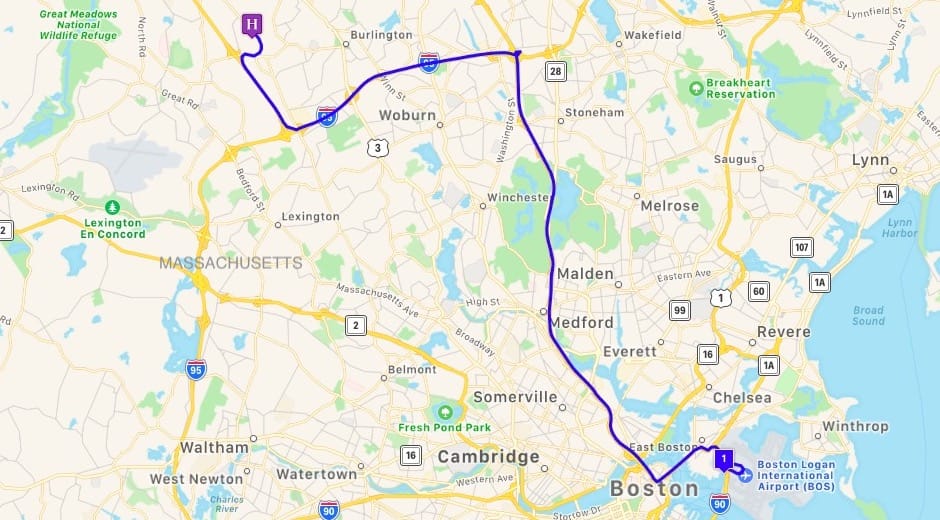We landen mooi op tijd in Boston, 13.06 uur, waar het lekker weer is, zo’n 27 graden. Hoewel het druk is bij immigrations gaat dat ook best snel. Wanneer we bij de bagage band aankomen komen onze koffers net aangerold. Dat is ook wel uniek voor ons. Op naar de auto!