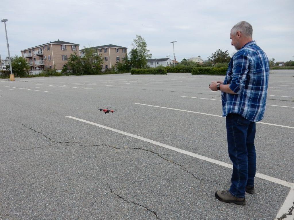 Langs de kust rijden we langzaam weer terug naar het zuiden. Langs de mooie en minder mooie zomerhuizen. Op een leeg en verlaten parkeerterrein gaat Jos nog even proberen of zijn drone wel werkt. Ja, doet het! Thuis verder mee spelen.