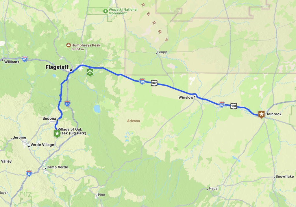 Van Holbrook, AZ naar Sedona, AZ