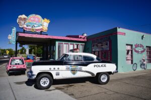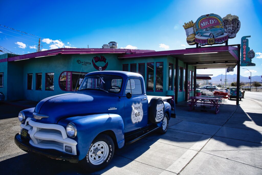 Voordat we echt verder rijden bekijken we nog een paar route 66 dingen in Kingman.