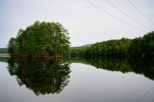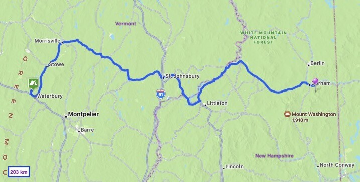 Dan door naar Stowe. We zijn nu weer in de staat Vermont. Druk, druk, druk daar. We rijden er doorheen, want we komen hier morgen terug. Het is ongeveer 16 uur dus we besluiten de camping op te zoeken. Die ligt ongeveer 15 km buiten Stowe. Het Little River State Park is snel gevonden en ons plekje is ook hier weer prima. Nu weer lekker in de natuur. De mensen naast ons slapen in tenten en ook al is het vandaag toch nog 20 graden geworden, vannacht zal het toch weer afkoelen. Bikkels zijn het.