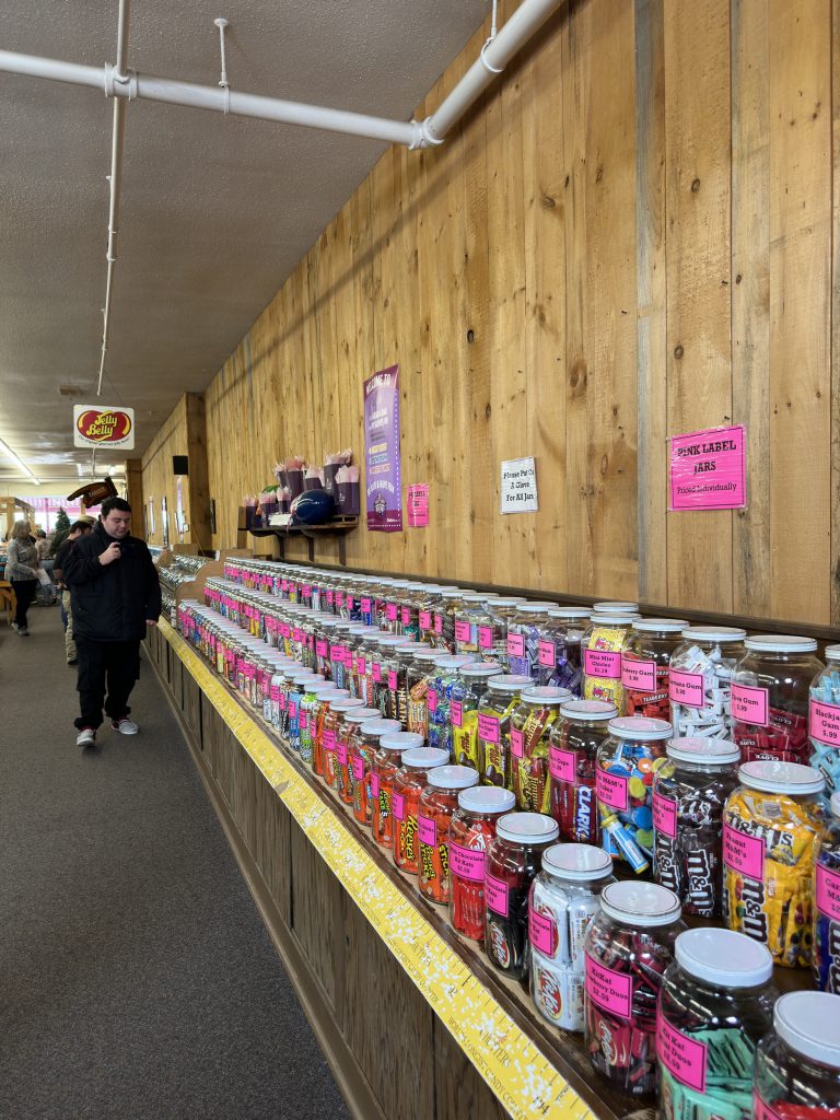 We maken een stop in Littleton NH, ook weer zo’n leuke, gezellige Main Street. Het is best druk, maar goed het is dan ook zaterdag. We lopen even binnen bij de plaatselijke snoepwinkel. Deze heeft de langste rij snoeppotten ter wereld. 35 meter lang snoeppotten. Grappig gezicht.