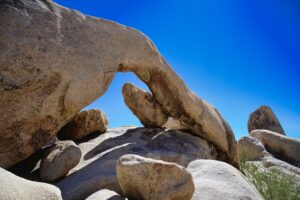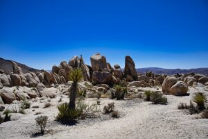 Wat gelijk opvalt dat het druk is, maar ja dat is het toe nu toe overal. De eerste wandeling die we doen is de Arch Rock trail. Deze is maar 2,1 km. Dus lekker om er weer in te komen. Uiteindelijk lopen we 2,6 km omdat we af en toe van de route afwijken. Het is een leuke trial met Joshua Trees. Dat laatste lijkt logisch, maar de bijzondere bomen staan niet overal. Aan het eind zijn veel rotsen, waar je ook op kan en mag klimmen. En natuurlijk een arch. Daar moet Jos geduld hebben om er een foto van te maken zonder mensen.