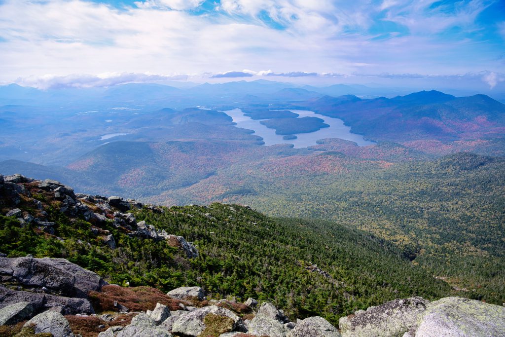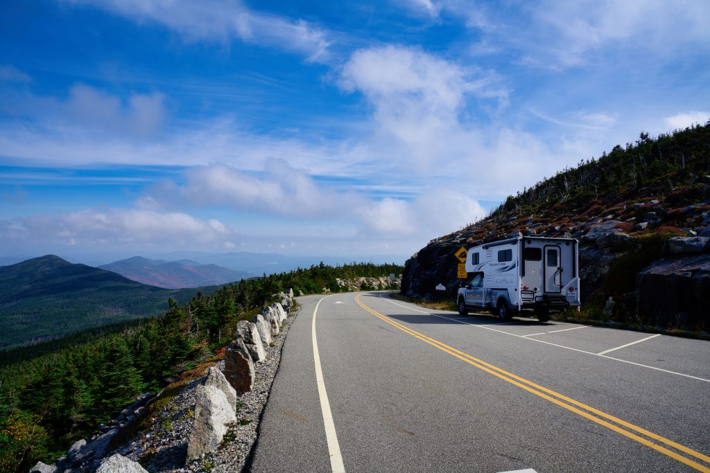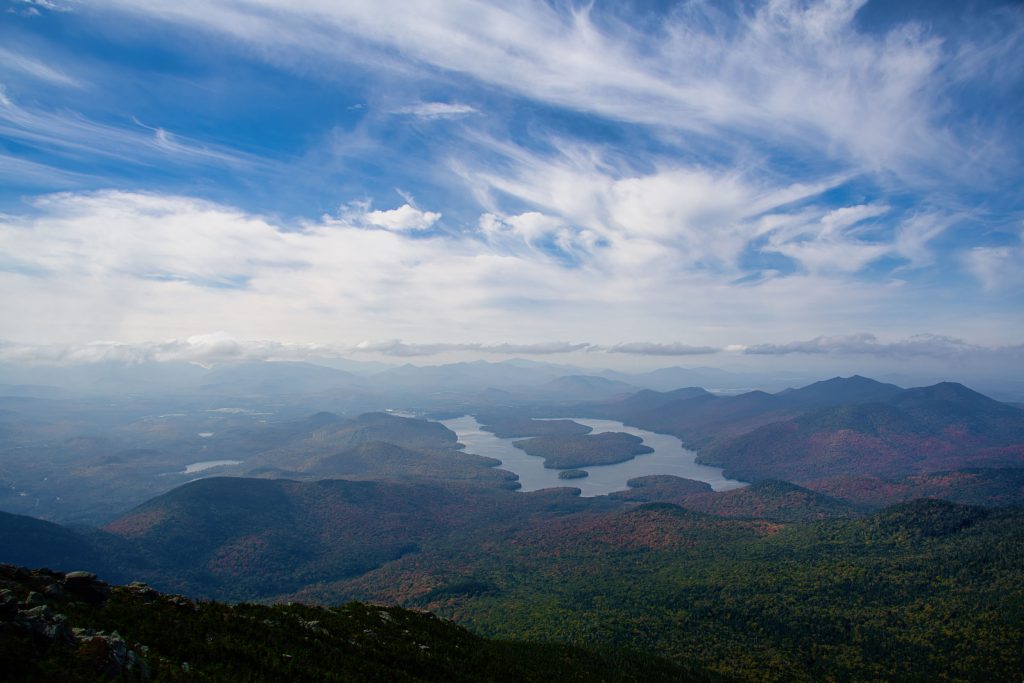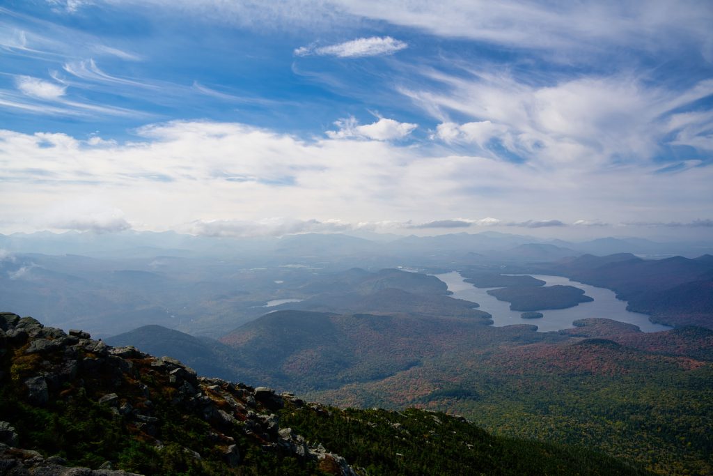 Gisteren op het water, vandaag gaan we een berg op. Na het ontbijt en zo verlaten we de camping. Nog geen 5 minuten rijden en we zijn al bij het begin van de Whiteface Veterans Memorial Highway. Deze weg gaat naar de top van Whiteface Mountain. We komen eerst bij het tolhuisje, want deze weg moet betaald worden. 40 dollar in ons geval. Dan moet het toch wel een mooie weg zijn. En dat is het ook! Slingerdeslang naar boven, met onderweg meerdere uitkijkpunten. Eenmaal boven krijgen we instructies hoe de camper te parkeren, allemaal even vriendelijk en behulpzaam. Het is niet druk en het parkeren, overdwars, gaat prima.ย