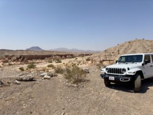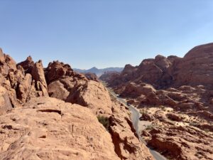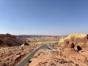 We stappen regelmatig uit om te genieten van deze prachtige omgeving. Jos loopt nog even een flinke heuvel op bij Rainbow Vista voor een schitterend uitzicht. Ik wacht wel beneden met een fles water.