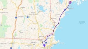 Dus we besluiten iets vroeger dan gepland op pad te gaan. We maken nog wel even gebruik van het goede ontbijt in het hotel en uiteindelijk rijden we om 9.15 weg. Zo vroeg dus ook weer niet, maar ja het is wel vakantie he. We nemen nu de interstate (I95) om zoveel mogelijk op te schieten. Wel stoppen we nog even bij een grote Walmart in Seabrook, NH. Deze heeft wel een koelbox voor ons, nog wat andere kleine boodschapjes en we gaan weer verder. We zijn om 11.30 uur op de plek van bestemming in Maine. Het was inderdaad wel druk, maar nog goed te doen gelukkig.