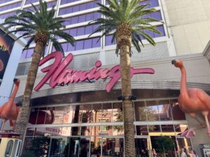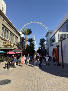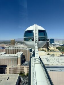 We zetten de auto weer bij het hotel neer. Tijd om aan de wandel te gaan. We lopen naar The Linq promenade. Hier staat ook de High Roller. Het reuzenrad van Vegas. 167 meter hoog als je bovenaan staat met je bakje. Nou ja, capsule heet dat hier. Het is een soort glazen bol waar je in zit. $ 29 per persoon, daarvoor maak je in 30 minuten een rondje.