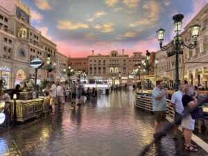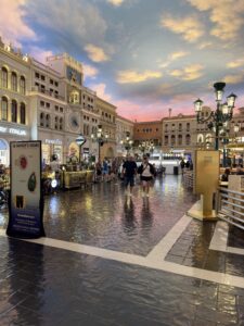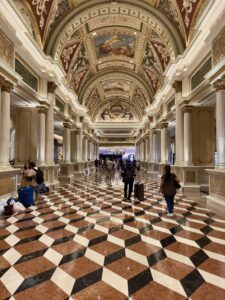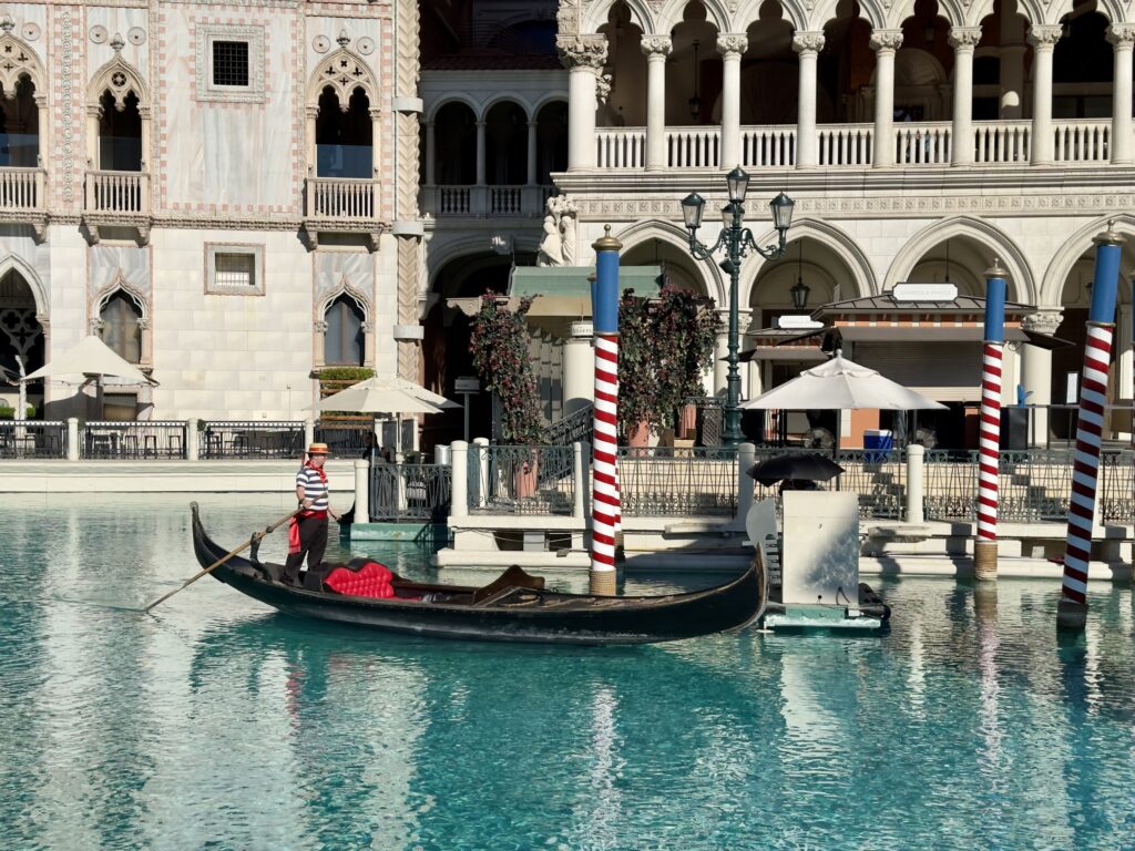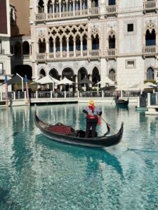 Naar de Venetian. Dit vind ik echt een van de mooiere hotels hier. Alsof je Venetiรซ loopt. Zo leuk die gondels en zo bijzonder dat dat gewoon door een hotel vaart haha. En het plein met het geweldige plafond alsof je buiten bent.