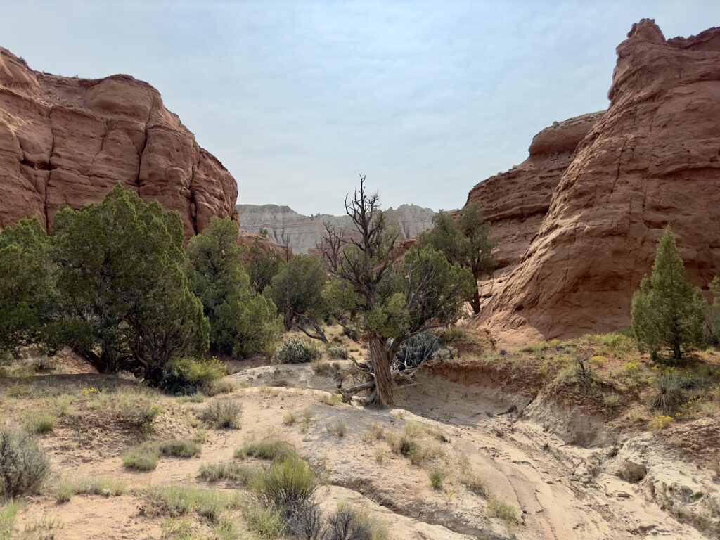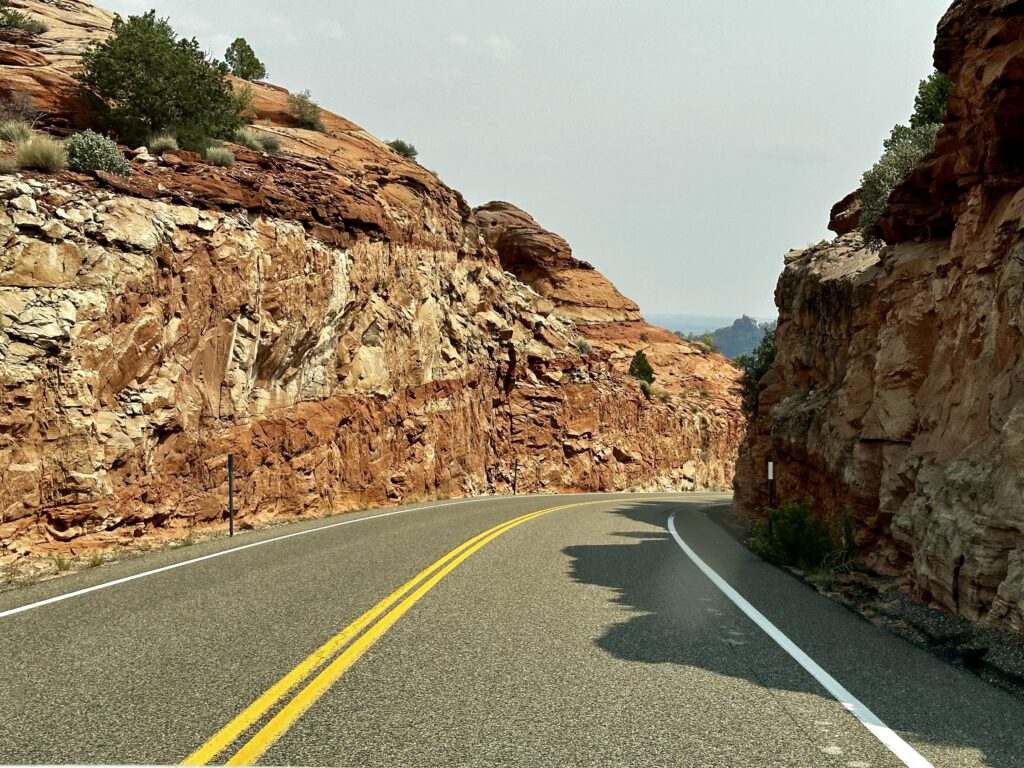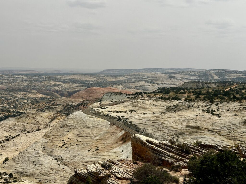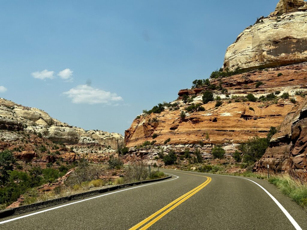 Daarna gaan we naar de SR12. Eรฉn van de mooiste wegen van Amerika. Voordat we bij het echt mooie gedeelte komen maken we nog even een omweg naar het Kodachrome Basin State park. Ja inderdaad, de naam is gekozen vanwege de mooie foto mogelijkheden. Wij vinden het de omweg zeker waard. We lopen de Angelโs Palace Trail. 2,4 km met 46 m hoogte verschil. Een leuke wandeling, soms met een duidelijk en makkelijk pad, soms wat klauteren over rotsen en zoeken naar de juiste weg. En inderdaad heel veel mooie foto momenten.