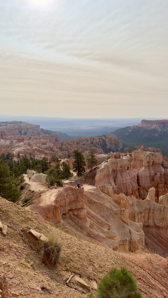 Na het uitchecken rijden we eerst nog even naar Sunrise point. Hier zouden we eigenlijk gisteren aangekomen zijn na de mislukte wandeling. Omdat het wel een prachtig punt is, gaan we er nog even langs om het te bekijken. Het is nu schitterend weer, geen donderwolk te zien.
