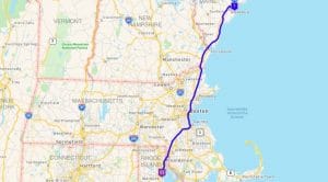 Het eerste stuk dat we vandaag rijden kennen we al, dus daar stoppen we verder niet meer. Wel maken we een stop bij de Kittery Trading Post, en daar hebben ze wel een road atlas. Het is toch fijn om te kunnen zien waar je bent op de kaart. Bovendien is het altijd weer fantastisch om door deze gigantisch grote outdoor winkel te lopen. Al snel na Kittery verlaten we Maine en rijden we New Hampshire binnen. Dat is best een redelijk grote staat, maar niet het stukje hier aan de kust, daar ben je snel doorheen en dan zitten we in Massachusetts.