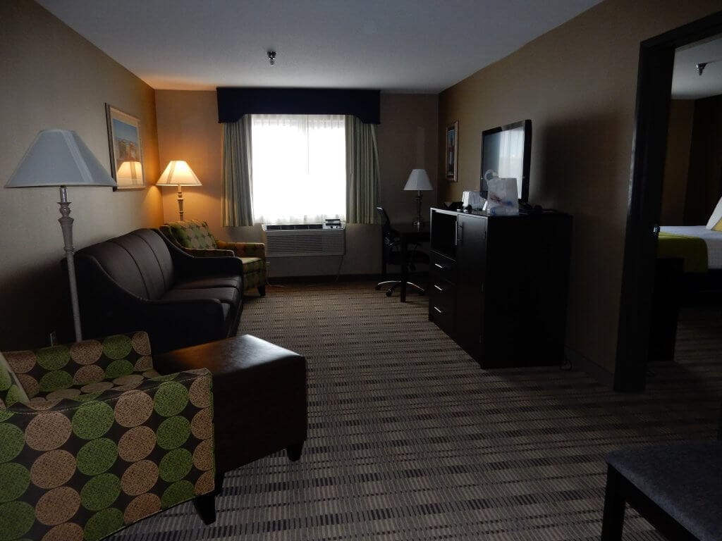 Iets ten zuiden van de stad, in Warwick ligt ons hotel. Tegen 17.00 uur zijn we er. Hadden we gisteren een klein kamertje, vandaag hebben we een balzaal met aparte slaapkamer. Tja, zo kan het ook. Ziet er netjes uit allemaal. Als we even lekker onderuit zitten met een drankje in de woonkamer wordt het opeens heel donker buiten. Een korte onweersbui trekt over ons hotel heen, lijkt Nederland wel na een warme zomer dag.